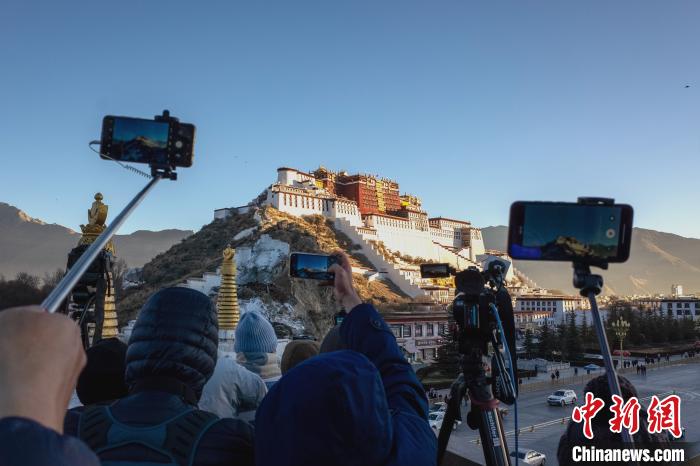 資料圖為2021年1月1日,游客、市民在拉薩布達拉宮觀景臺觀看日出。江飛波 攝