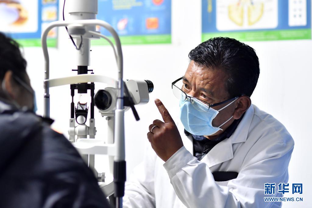 3月24日,西藏拉薩光明眼科康復(fù)診療院醫(yī)生對白內(nèi)障患者進(jìn)行檢查。新華社記者 覺果 攝