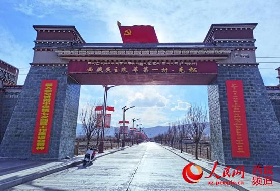 克松社區(qū),距拉薩兩小時(shí)車程。遠(yuǎn)遠(yuǎn)地,人們就能看見村口的“西藏民主改革第一村·克松”幾個(gè)大字在陽光下熠熠生輝。