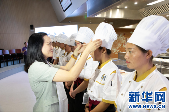 圖為東莞市稻香中菜廚藝職業(yè)培訓(xùn)學(xué)院院長(zhǎng)李坤媛與學(xué)員(4月2日攝)。新華網(wǎng)發(fā)(林芝市人力資源和社會(huì)保障局供圖)