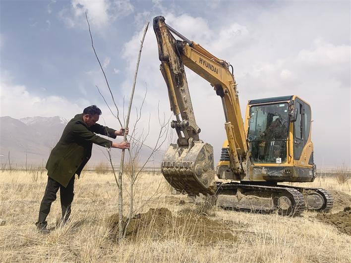 死了那么多樹,為什么還在堅持?“那幾年,在這里隨手捧起一把黃土,還會沙化。我必須堅持下來。”索朗羅布說。2015年春天,索朗羅布再次貸款40余萬元購買了一臺挖掘機(jī),準(zhǔn)備修建水渠和挖坑。同年3月,索朗羅布又一次獨(dú)自種樹苗,母親卓瑪央金心疼壞了,于是帶著村里姐妹們前來幫忙。不僅如此,她們還帶來了防止草原鼠啃食樹根的土方法,用塑料瓶圍著樹根包一圈,既能防止草原鼠搞破壞,還能節(jié)省成本。