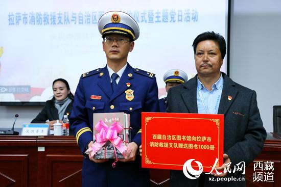 雙方還簽訂了共建協(xié)議,就圖書(shū)流動(dòng)站建設(shè)、消防志愿服務(wù)隊(duì)建設(shè)和數(shù)字化電子圖書(shū)服務(wù)等達(dá)成一致。旦增卓瑪代表西藏自治區(qū)圖書(shū)館向拉薩市消防救援支隊(duì)贈(zèng)送書(shū)籍1000冊(cè)。
