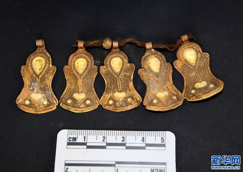 西藏札達(dá)桑達(dá)隆果墓地出土的金掛飾。(資料照片)新華社發(fā)