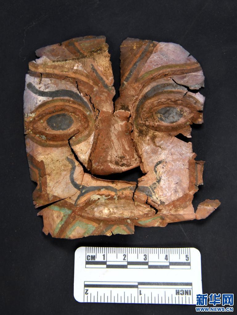 西藏札達(dá)桑達(dá)隆果墓地出土的銀質(zhì)鎏金面飾。(資料照片)新華社發(fā)