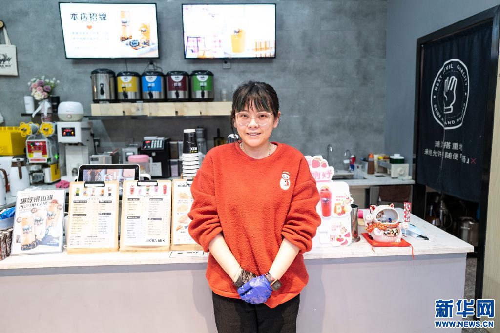 澳門姑娘邵穎怡站在自己位于拉薩的奶茶店里(5月6日攝)。新華社記者 孫瑞博 攝