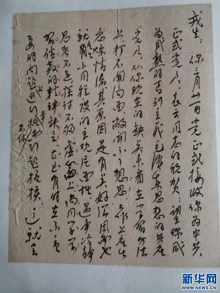 “戎生……我一生,只知為黨為人民,不知為私,你媽媽也是一樣。生出你們兄弟妹以來,均寄托出去了,不能照顧你們周到,現(xiàn)在你們均長成人了,也很努力求進步,這就很好,對我在邊疆工作也是很大的鼓勵之一?!?/p>