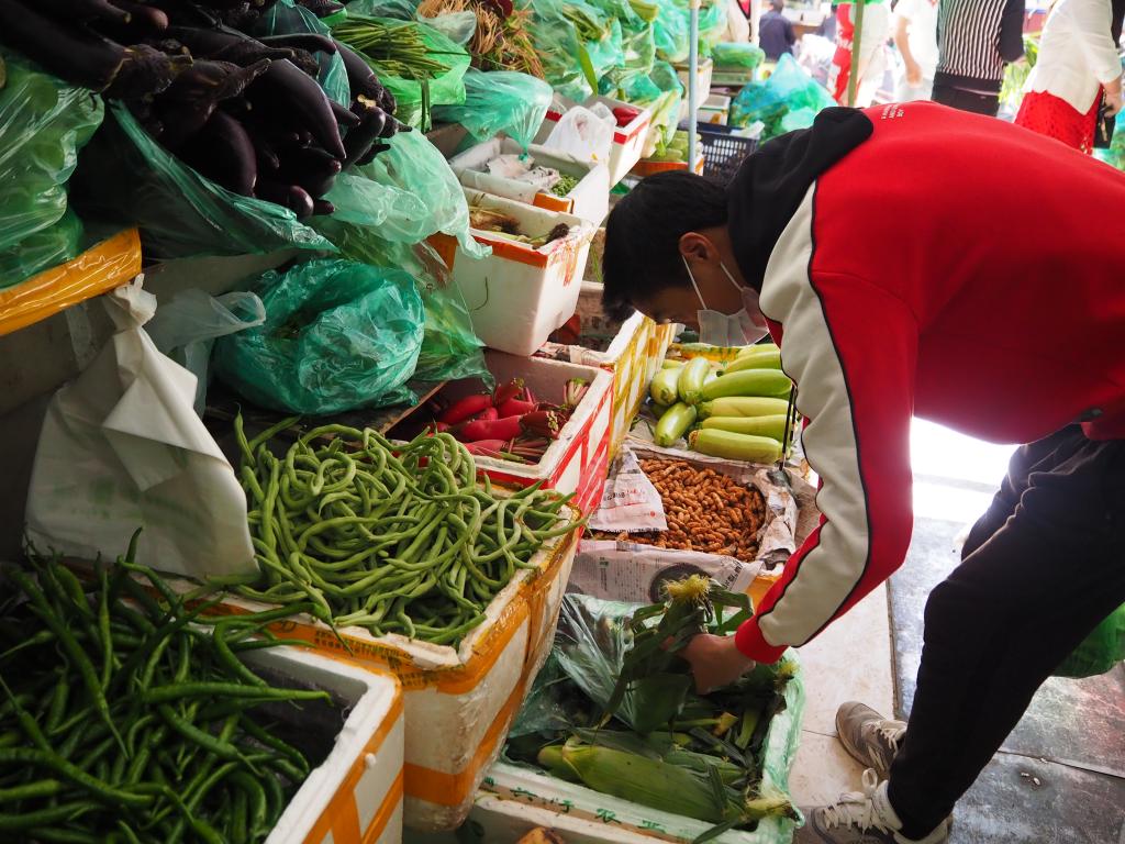 一大早,拉薩市民洛桑就來到離家不遠(yuǎn)的拉薩八一農(nóng)產(chǎn)品市場買菜。