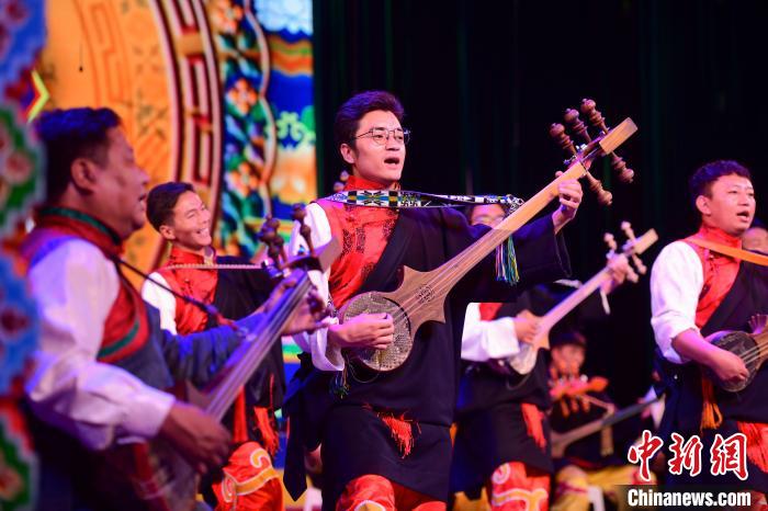 圖為西藏大學(xué)藝術(shù)學(xué)院音樂系帶來的扎念彈唱《普伊桑林貢巴》。 貢嘎來松 攝