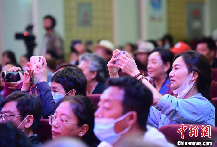 圖為場觀眾正在用手機拍攝西藏非遺演出?!∝暩聛硭?攝