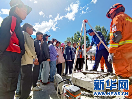 西藏自治區(qū)兒童福利院的孩子們到西藏森林消防總隊訓練大隊觀摩地震救援展示(6月14日攝)。甄小龍攝