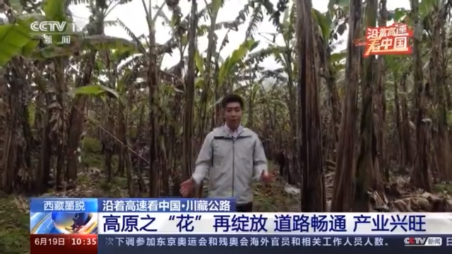總臺記者 孟湛東:我現(xiàn)在是在扎墨公路沿線的一片香蕉林,墨脫地區(qū)的氣候條件跟西藏其他地方相比有很大的不同。在公路沿線,經(jīng)常可以看到像甘蔗、檸檬、香蕉等等這樣的熱帶經(jīng)濟作物。近幾年,扎墨公路貫通了之后,很多游客會駕車,通過公路進入到墨脫旅游,所以在沿線就會有很多的蕉農(nóng)砍下自己的香蕉,拿到路邊進行銷售。