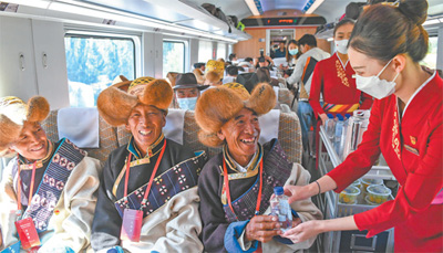 拉林鐵路位于青藏高原岡底斯山與喜馬拉雅山之間的谷地,90%以上的線路走行于海拔3000米以上,地形地質(zhì)條件極其復(fù)雜。經(jīng)過(guò)6年多的施工,建設(shè)者們?cè)诒Wo(hù)好生態(tài)環(huán)境的基礎(chǔ)上,攻克一系列全國(guó)性、世界性罕見(jiàn)難題,創(chuàng)造了高原鐵路建設(shè)奇跡。延伸的鐵路、飛馳的列車,串起雪域高原上的“團(tuán)結(jié)線”,促進(jìn)各民族交往交流交融;鋪就增收致富的“幸福路”,推動(dòng)產(chǎn)業(yè)轉(zhuǎn)型升級(jí),助力西藏自治區(qū)實(shí)現(xiàn)高質(zhì)量發(fā)展。(版式設(shè)計(jì):蔡華偉)