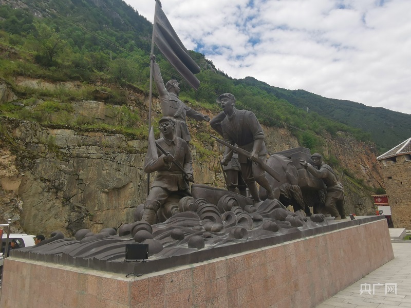 崗?fù)写宓募t色雕塑(總臺央廣記者 陳怡 攝)