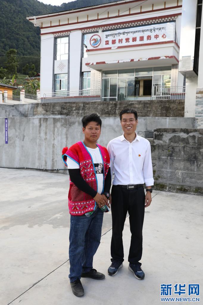 京都村黨支部書記廖澤路(左)和駐村工作隊負責(zé)人徐俊杰合影(7月22日攝)。新華社記者 金立旺 攝