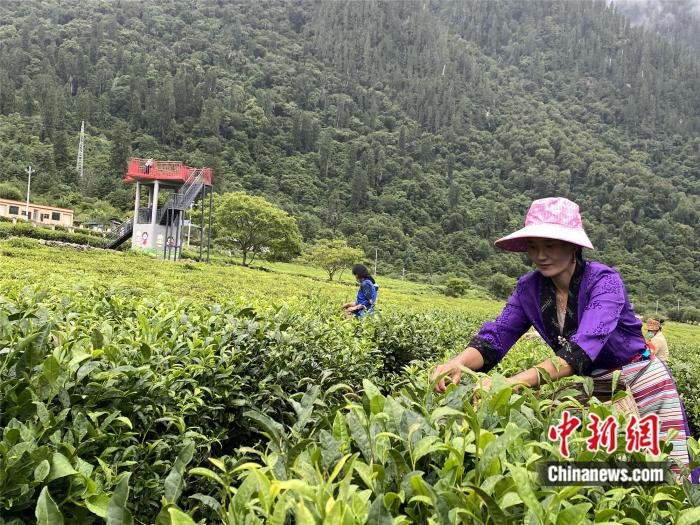 茶產(chǎn)業(yè)還給當?shù)厝罕娫黾恿耸杖?。一個正在采茶的藏族姑娘告訴媒體團,采來的茶葉論斤計價,如果采到最尖端的小嫩葉,每斤可換回150元。