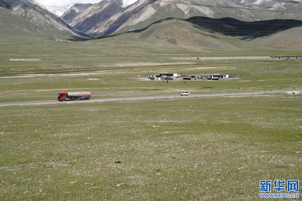 汽車行駛在青藏公路拉薩市當(dāng)雄縣境內(nèi)(2021年6月29日攝)。新華社記者 劉洪明 攝