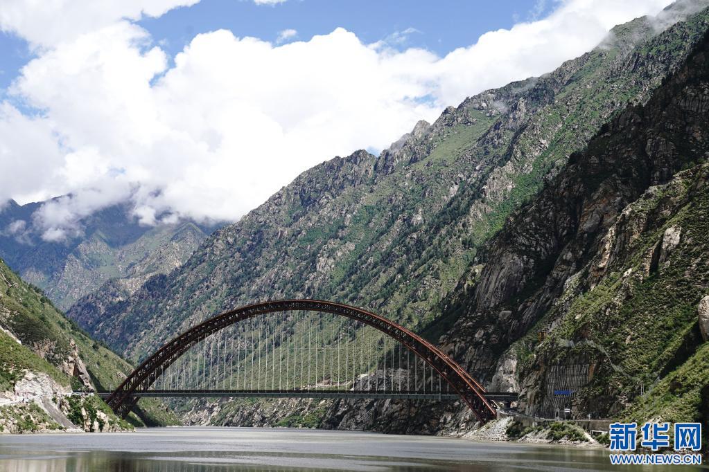 拉林鐵路藏木雅魯藏布江雙線特大橋,全長525.1米,主拱跨徑430米(2021年7月11日攝)。新華社記者 劉洪明 攝