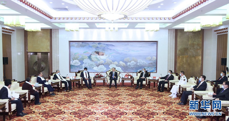 8月18日,以中共中央政治局常委、全國(guó)政協(xié)主席汪洋為團(tuán)長(zhǎng)的中央代表團(tuán)飛抵拉薩,出席西藏和平解放70周年慶?;顒?dòng)。受黨中央和習(xí)近平總書(shū)記委托,汪洋在拉薩飯店看望在藏領(lǐng)導(dǎo)干部、老同志白瑪赤林、帕巴拉·格列朗杰和列確、巴桑,以及阿沛·阿旺晉美同志家人代表,向他們表示親切問(wèn)候。新華社記者 劉彬 攝