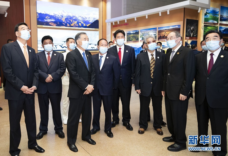 8月18日,以中共中央政治局常委、全國(guó)政協(xié)主席汪洋為團(tuán)長(zhǎng)的中央代表團(tuán)飛抵拉薩,出席西藏和平解放70周年慶祝活動(dòng)。這是汪洋率代表團(tuán)全體成員來(lái)到西藏博物館,出席《黨的光輝照邊疆 錦繡高原譜華章——西藏和平解放70周年成就展》開(kāi)幕式并參觀展覽。新華社記者 黃敬文 攝
