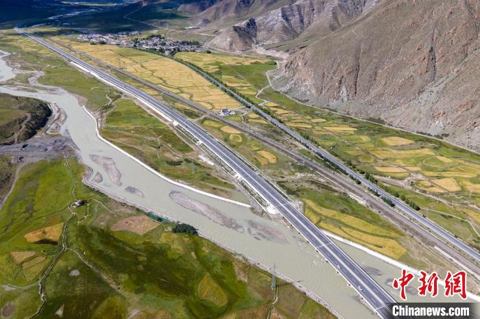 圖為8月27日,航拍西藏那拉高速堆龍德慶段田園風(fēng)光?!〗w波 攝