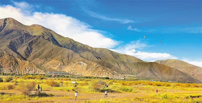 圖為市民在拉薩河畔放風箏。