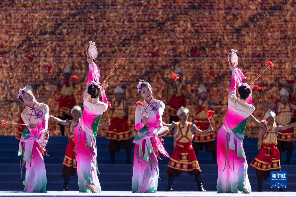 9月13日,演員在2021雅礱文化旅游節(jié)開幕式上表演舞蹈《織夢》。新華社記者 孫瑞博 攝