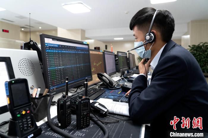 圖為機場工作人員了解相關動態(tài)。程征宇 攝