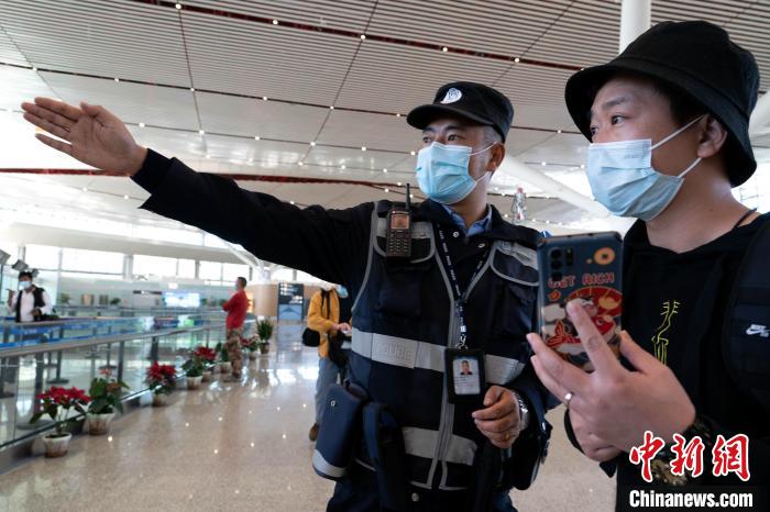 圖為機場安保人員為旅客提供服務。程征宇 攝