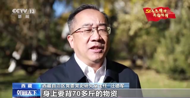 西藏自治區(qū)黨委黨史研究室主任 汪德軍:進(jìn)藏部隊每一個干部戰(zhàn)士身上要背70多斤的物資,徒步走進(jìn)西藏。在翻越西藏大山大河過程中,干部戰(zhàn)士克服了重重困難,一路為西藏老百姓看病送藥,讓我們西藏老百姓首先認(rèn)識了解放軍,認(rèn)識了共產(chǎn)黨。