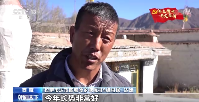 拉薩市達(dá)孜區(qū)塘嘎鄉(xiāng)塘嘎村9組村民 達(dá)娃:(農(nóng)業(yè)研究所)給了我們1500畝的良種進(jìn)行試種,今年長勢非常好,一畝地可以出800到900斤,大家非常喜歡。這個良種一方面產(chǎn)量非常高,另一方面抗倒伏。我們收割很方便,秸稈的量也比其他的品種要多。