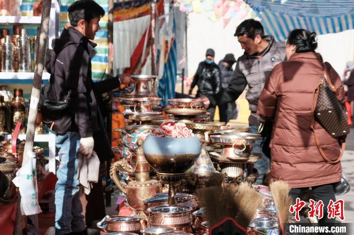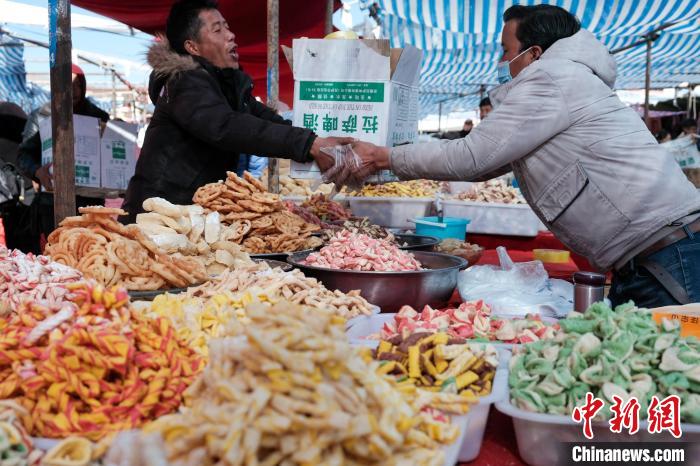 以農(nóng)耕為主的日喀則有“西藏糧倉(cāng)”之稱,為不耽誤農(nóng)事,包括日喀則在內(nèi)的農(nóng)耕區(qū)習(xí)慣提前一個(gè)月,在藏歷十二月慶祝新年,被稱為日喀則農(nóng)事新年。1月31日是春節(jié)除夕,恰逢日喀則農(nóng)事新年的“古突夜”,小新在日喀則年貨市場(chǎng)看到,該市場(chǎng)內(nèi)的“卡塞”、青稞苗、“羅薩美朵”、牦牛肉干、酥油、糖果等各類藏式年貨琳瑯滿目,大家也抓緊時(shí)間置辦,為晚上熱熱鬧鬧過(guò)“古突”做最后的準(zhǔn)備。