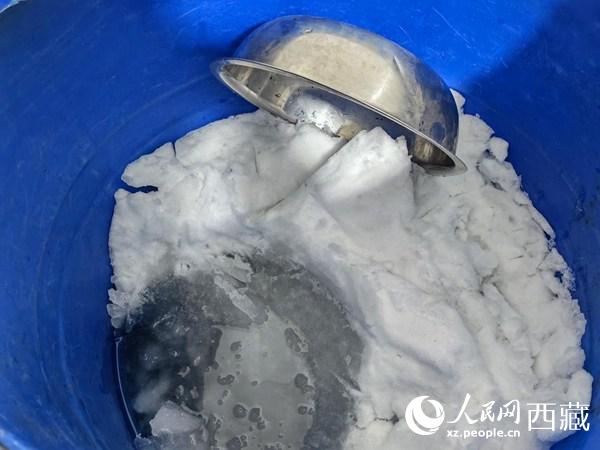 沒有水的日子里,囤雪是常規(guī)操作?!耙煌把┑糜靡惶鞎r(shí)間才能化開?;┻€有技巧呢,桶里必須預(yù)留部分水,再放到爐邊才行。”雖然水管從山下接到了哨所,但冬季氣溫降到零下幾十度,水管結(jié)冰,化雪取水的傳統(tǒng)依然不能丟?!跋匆伦鲲堄玫亩际茄┧€是要珍惜?!眻嚎谏谒嚅L(zhǎng)文盛高笑著說(shuō)。