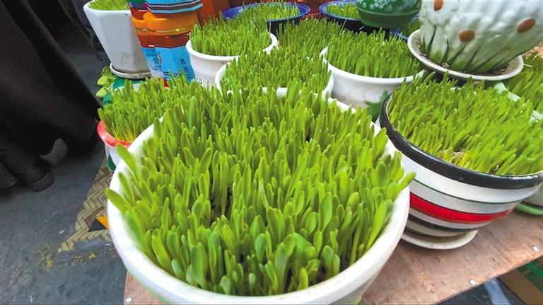 圖為八廓商城內(nèi)售賣的青稞苗。