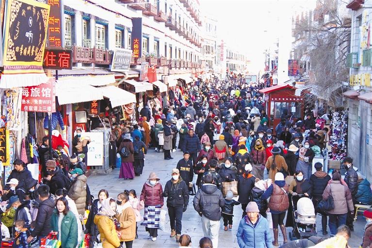沖賽康市場、八廓商城、拉薩市區(qū)各大小超市……熱鬧非凡、人頭攢動(dòng),處處都是為了采購藏歷新年年貨樂此不疲的居民群眾,耳邊盡是熟悉的吆喝聲,到處都是歡樂與喜慶。