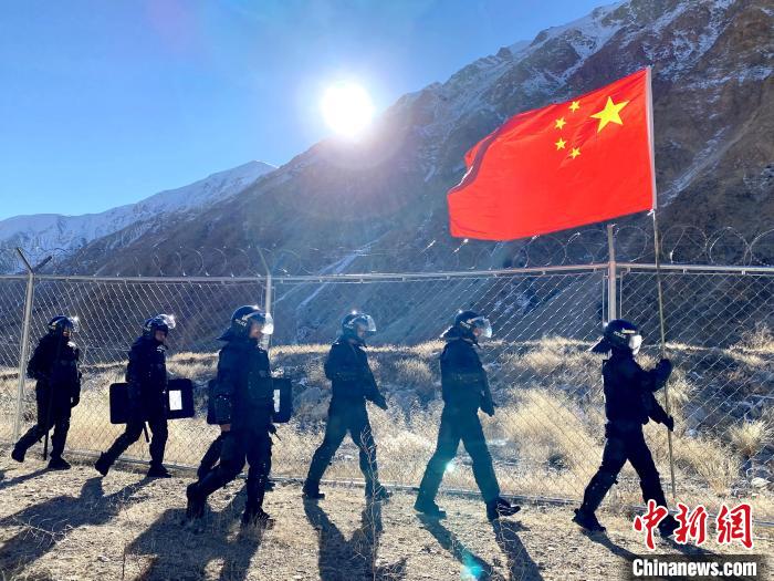圖為普蘭邊檢站民警在邊境國門巡邏?!「駸帷z