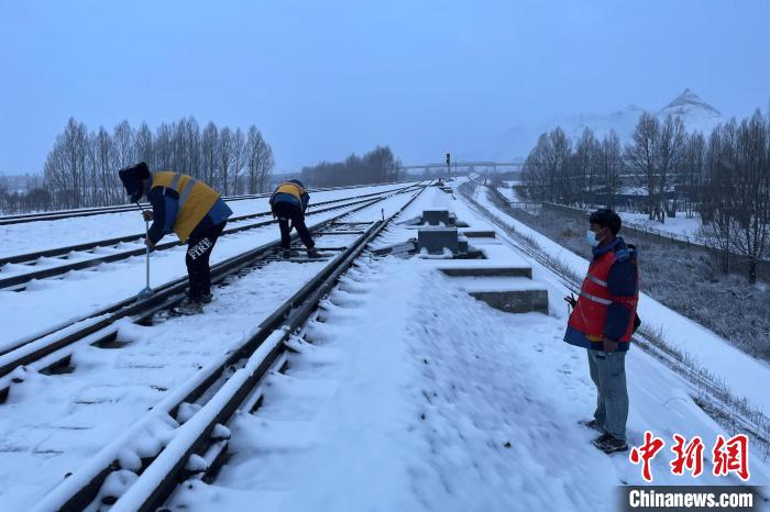 21日,西藏自治區(qū)日喀則市迎來大雪天氣,國(guó)鐵青藏集團(tuán)有限公司拉薩基礎(chǔ)設(shè)施段日喀則信號(hào)車間立即啟動(dòng)除雪應(yīng)急預(yù)案,工區(qū)工長(zhǎng)蒲志遠(yuǎn)組織職工清掃積雪,保障拉日鐵路正常運(yùn)營(yíng)。