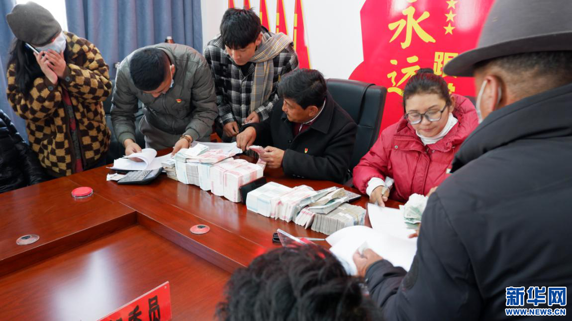 2月23日,維巴村維巴組、曲色組股份經(jīng)濟(jì)合作社分紅現(xiàn)場(chǎng)。新華網(wǎng) 殷小燕攝