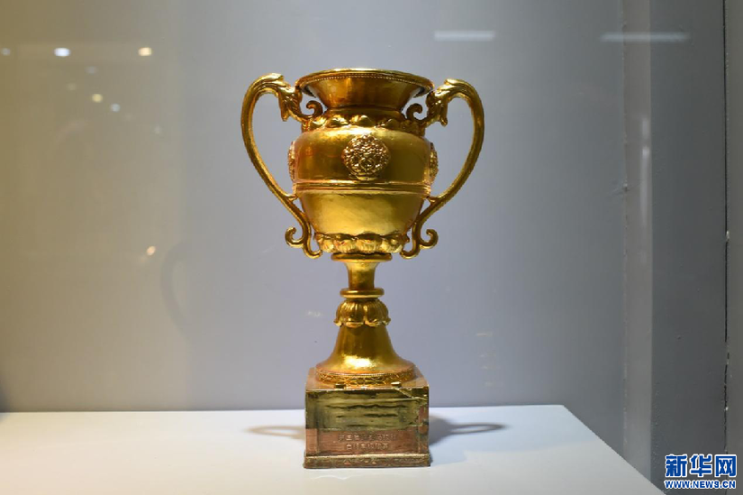 圖為白納鍛銅技藝代表性傳承人羅布占堆的手工作品《獎(jiǎng)杯》(2月25日攝)。新華網(wǎng) 旦增努布 攝
