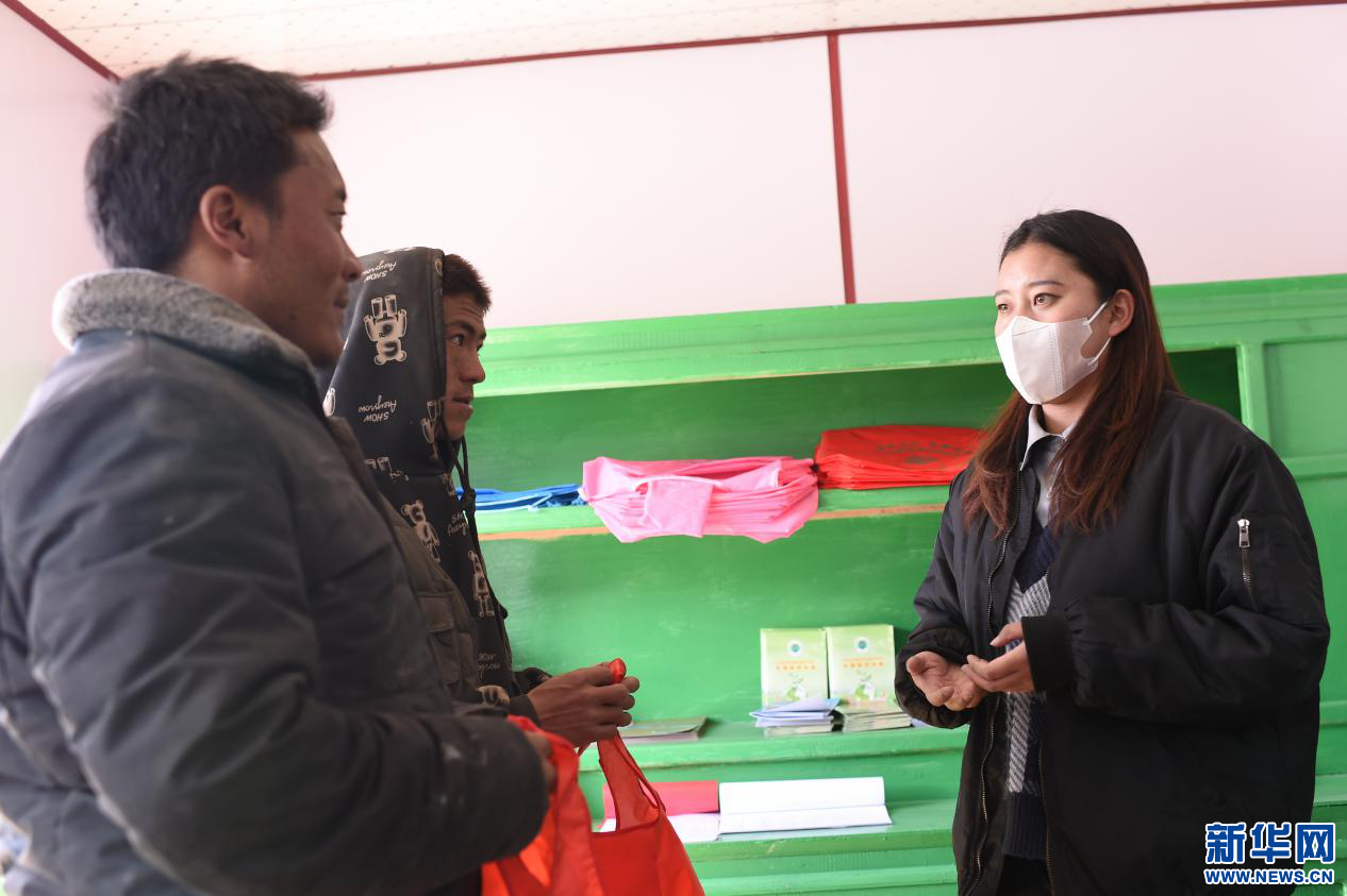 圖為群眾在領(lǐng)取環(huán)保袋(4月20日攝)。新華網(wǎng) 旦增努布攝