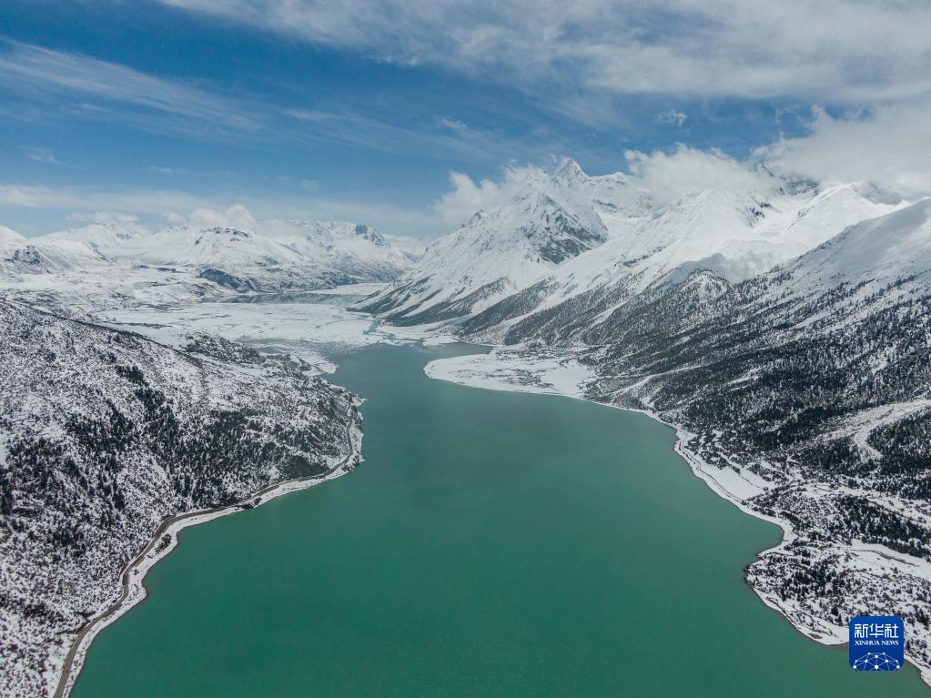 這是無人機拍攝的然烏湖(4月24日攝)。新華社記者 孫非 攝