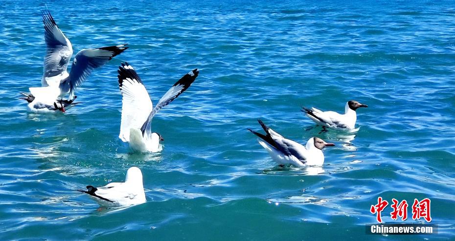 連日來,班公湖晴空萬里,在藍(lán)寶石般的湖面上,小白鳥自由游弋。貢桑拉姆 大象 嘎瑪次仁 攝