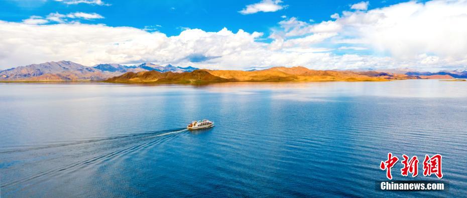 位于西藏阿里地區(qū)日土縣境內(nèi)的班公湖又稱措木昂拉仁波,藏語意為“長脖子天鵝”,湖面海拔4240米,長約155公里,南北寬約15公里,水深57米,為高寒氣候,湖內(nèi)有世界上海拔最高的鳥島。連日來,這里晴空萬里,在藍(lán)寶石般的湖面上,小白鳥自由游弋。鳥瞰班公湖,景色如畫。貢桑拉姆 大象 嘎瑪次仁 攝