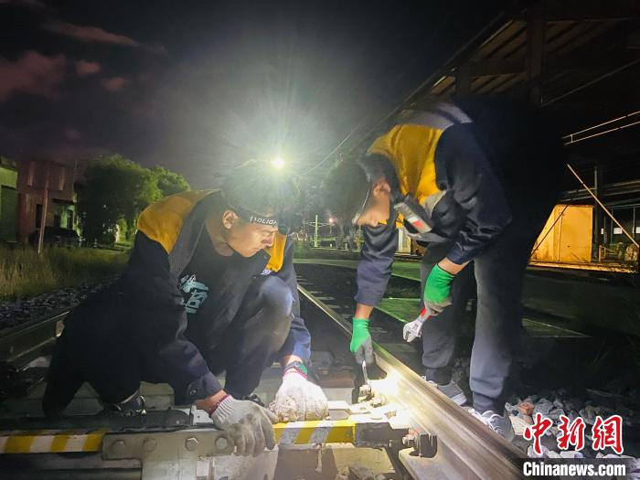 “‘天窗’命令已下達,大家?guī)Ш霉ぞ卟牧?,準備上道作業(yè)?!币鼓唤蹬R,隨著作業(yè)負責人唐發(fā)元一聲令下,中國鐵路青藏集團有限公司拉薩基礎(chǔ)設(shè)施段信號集中修隊16名職工迅速上道,夜色下一行工人帶著工具,向拉林鐵路山南站東岔區(qū)走去。