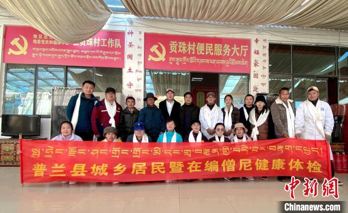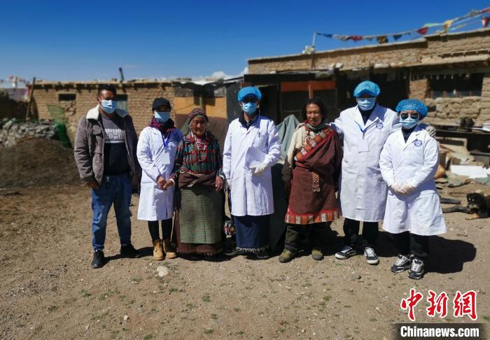 圖為醫(yī)護人員與基層村干部合影。普蘭縣人民醫(yī)院供圖
