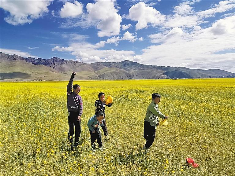 2021年,在中國科學(xué)院青藏高原研究所和北京林業(yè)大學(xué)專業(yè)研究團隊的幫助下,這里的牧草種植又上了一個新臺階——油菜與牧草混合種植。