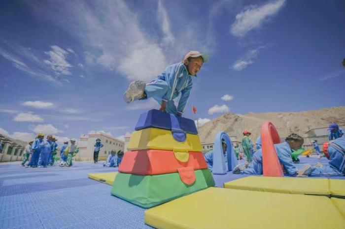 “新操場(chǎng)是我們的游樂園”,六歲的旦增次央第一次見到操場(chǎng)時(shí)開心極了,“操場(chǎng)上可以跑可以跳,還有好多新玩具,太好玩了!”