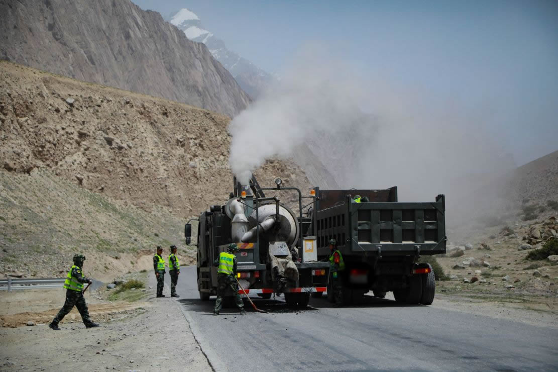 對此,該支隊(duì)充分利用新疆當(dāng)季天氣較好時(shí)機(jī),在新藏公路新疆段600多公里道路進(jìn)行病害集中治理,官兵們分別在庫地達(dá)坂、麻扎達(dá)坂、黑卡子達(dá)坂、奇臺達(dá)坂等多個(gè)病害點(diǎn)展開工作。