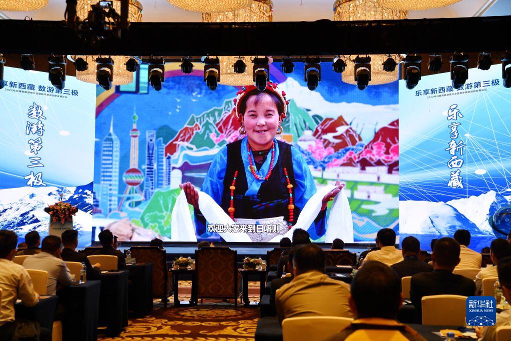 在2022年西藏日喀則旅游推介會(huì)暨數(shù)字旅游創(chuàng)新發(fā)展論壇上,國內(nèi)業(yè)界人士就數(shù)字文旅和日喀則旅游數(shù)字化發(fā)展前景進(jìn)行主題演講和對話(7月15日攝)。新華社記者 張汝鋒 攝
