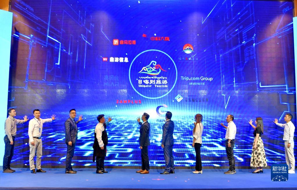 在2022年西藏日喀則旅游推介會(huì)暨數(shù)字旅游創(chuàng)新發(fā)展論壇上,日喀則旅游大數(shù)據(jù)中心揭牌(7月15日攝)。新華社記者 張汝鋒 攝