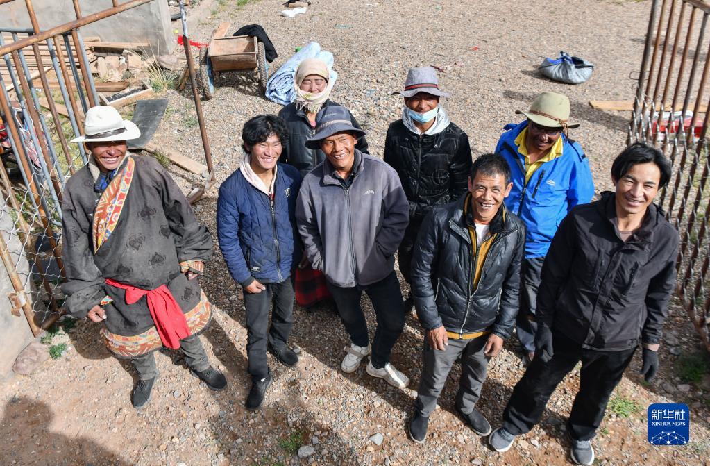 雙湖縣多瑪鄉(xiāng)果根擦曲村的牧民在一起搬家時(shí)合影留念(7月13日攝)。新華社記者 晉美多吉 攝